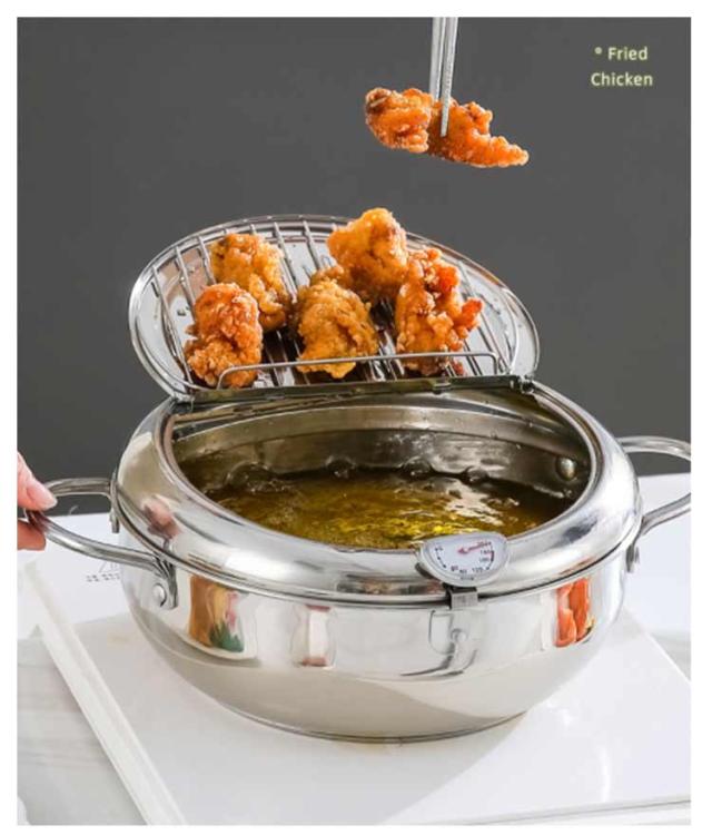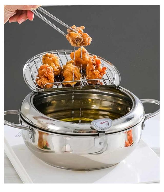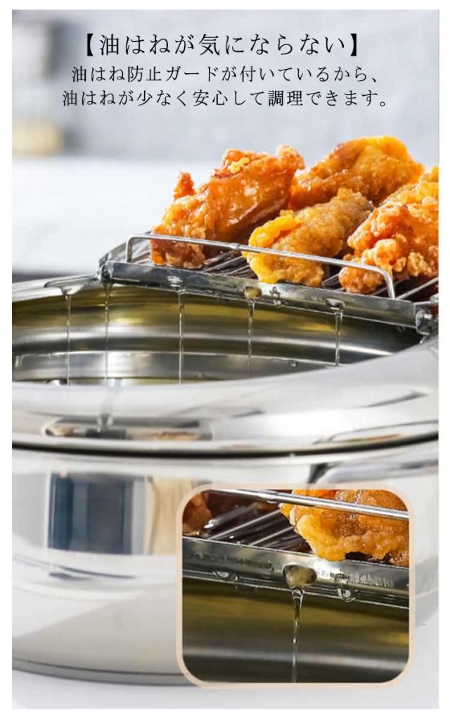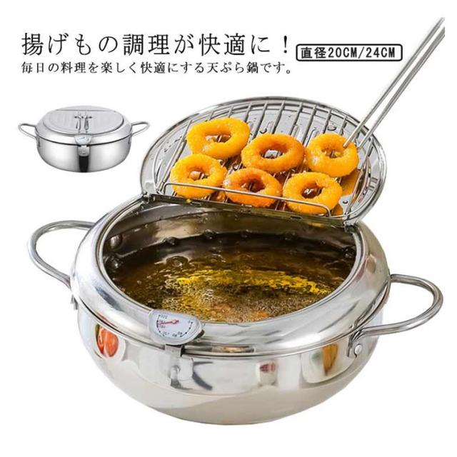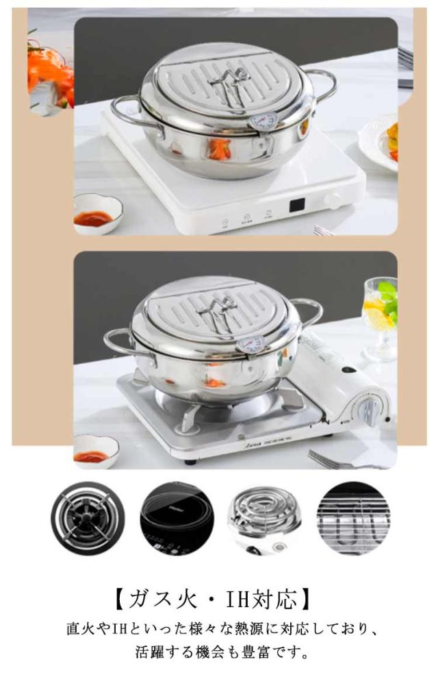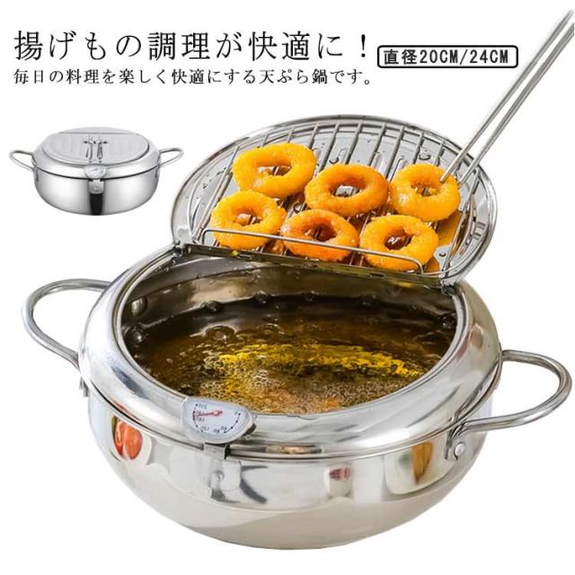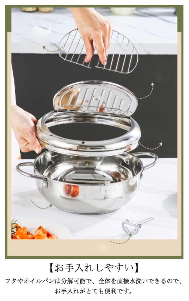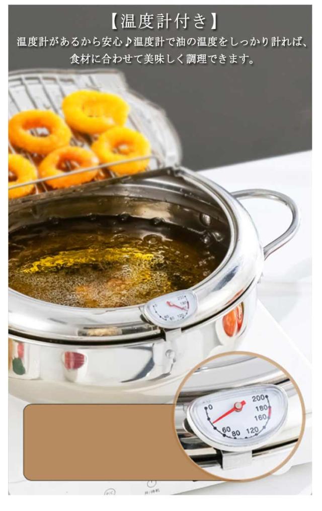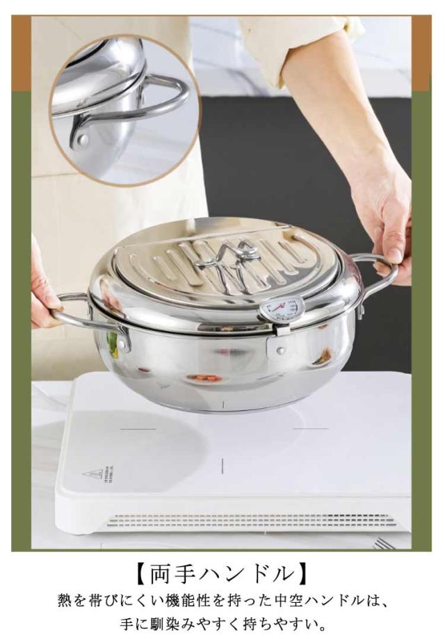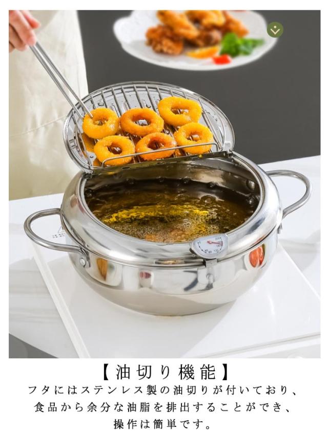 油切り 揚げ物 揚げ鍋 IH対応 天ぷら鍋 ガス火 ステンレス製 お洒落 天麩羅 取っ手付き 温度計付 丸型 蓋付き 唐揚げ 天ぷら鍋 コンパクト キッチン用品 調理器具 お手入れ簡単 家庭用