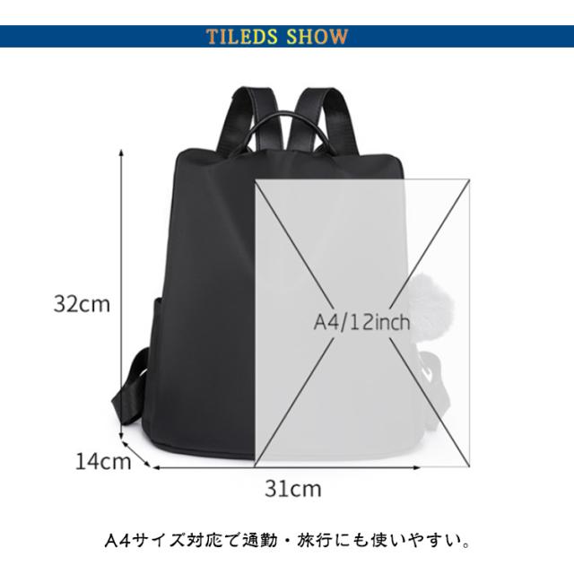 | シンプルな見た目ながら、機能性が充実のナイロンリュック。 盗難を防止でき、防犯性を大幅に高めています。 軽くて丈夫、撥水性も備えたレディース用リュック。 サイドポケットにはペットボトルや折りたたみ傘も入ります。 A4サイズ対応で通勤・旅行にも使いやすい。 通勤、通学、デートにはもちろん、普段のお出掛けや旅行、アウトドア、出張など幅広いシーンで活躍すること間違いなしのアイテムです。 | |