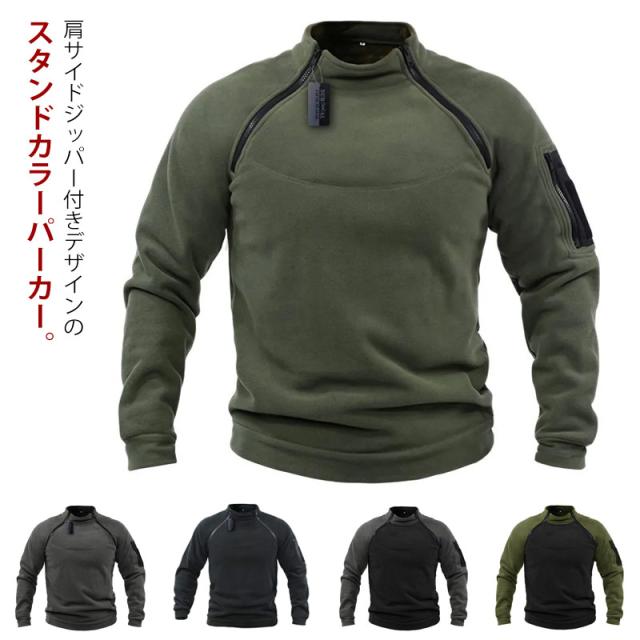 秋冬 もこもこ メンズ アウトドア スタンドカラー トレーナー トップス カジュアル 暖かい ボアフリース S ボアフリース ジップ付き ミリタリー M L XL 2XL 3XL 4XL