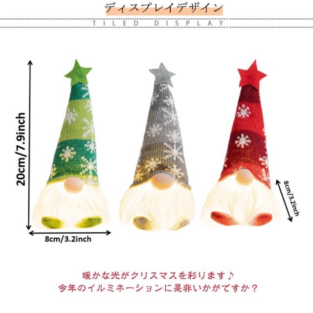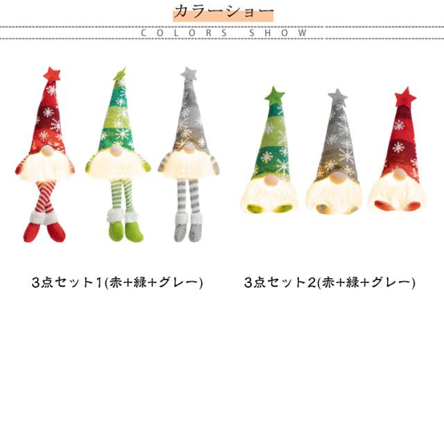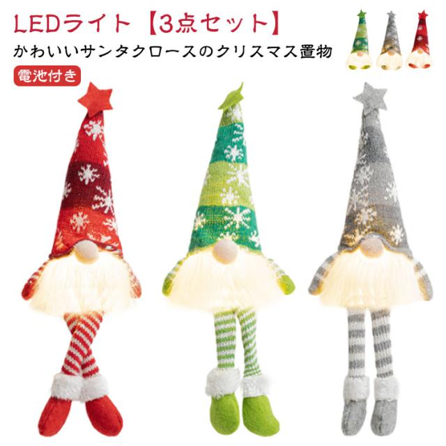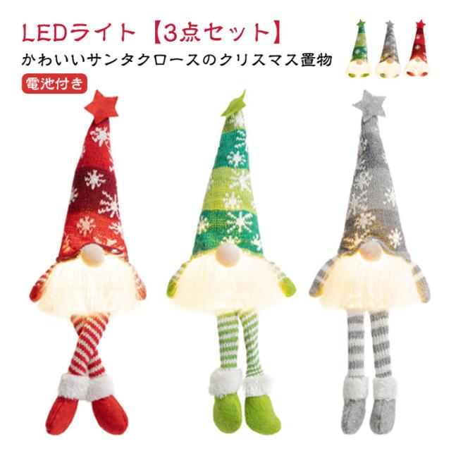 3点セット 飾り LED 置物 おしゃれ ナイトライト クリスマス 北欧 サンタクロース イルミネーション ドワーフ人形 ぬいぐるみ 光る オーナメント 3点セット 玄関 照明 ライト ディスプレイ 卓上 窓 かざり デコレーション プレゼント ギフト
