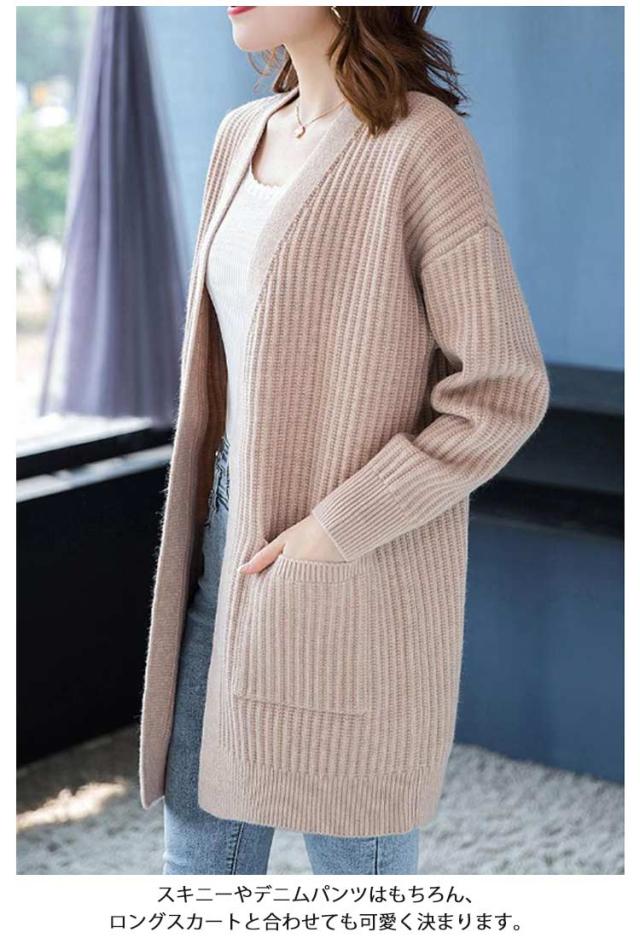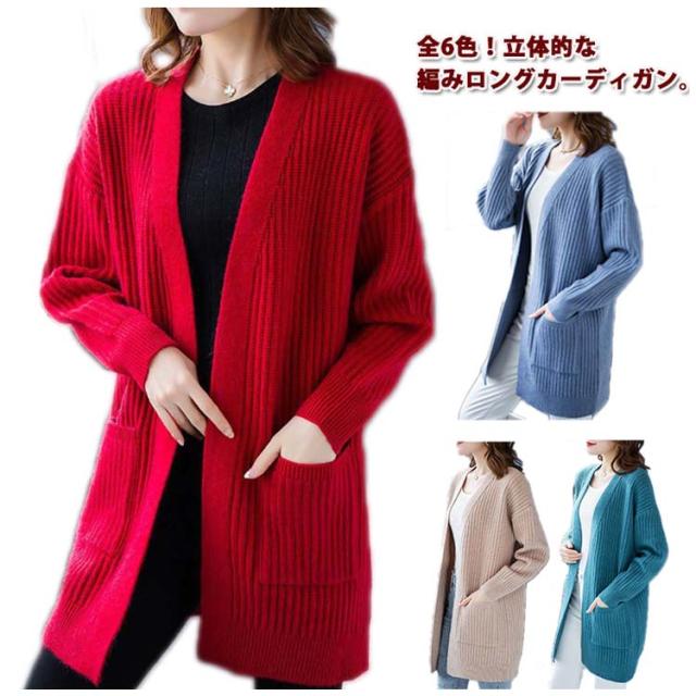 カーディガン ニットトップス ニットカーディガン レディース ニット ざっくり 可愛い L ロングカーディガン アウター セーター ロング丈 シンプル ポケット付き ロング カジュアル 長袖 スリム シンプル M ざっくり XL 2XL 3XL