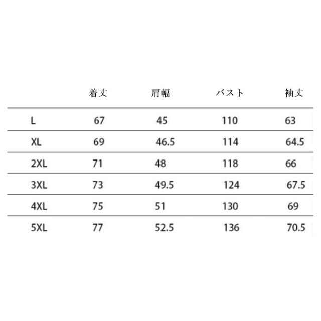 | サイズについての説明 | L XL 2XL 3XL 4XL 5XL サイズ:写真通り ※上記サイズは平置き実寸になります。サイズ表の実寸法は商品によって1-3cm程度の誤差がある場合がございます。 |