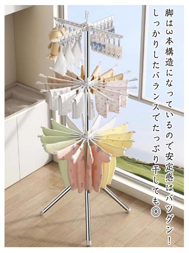 お洒落 室内干し 物干しスタンド 洗濯物干し 3段 部屋干し ベランダ用 衣類乾燥ラック パラソルハンガー 大容量 ピンチハンガー 省スペース 室内・屋外兼用 室内干し 滑り止め 洋服 タオル干し 組み立て簡単