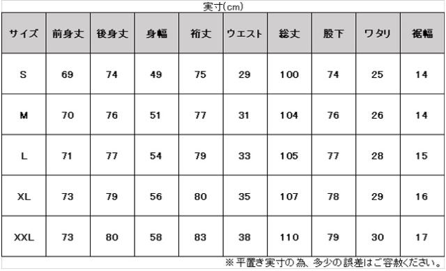 サイズ:身長 / 胸囲 / ウェスト