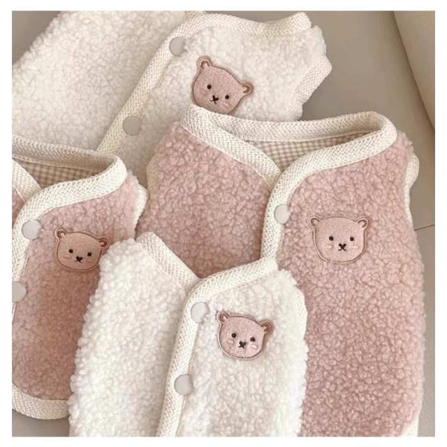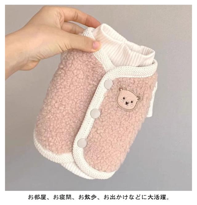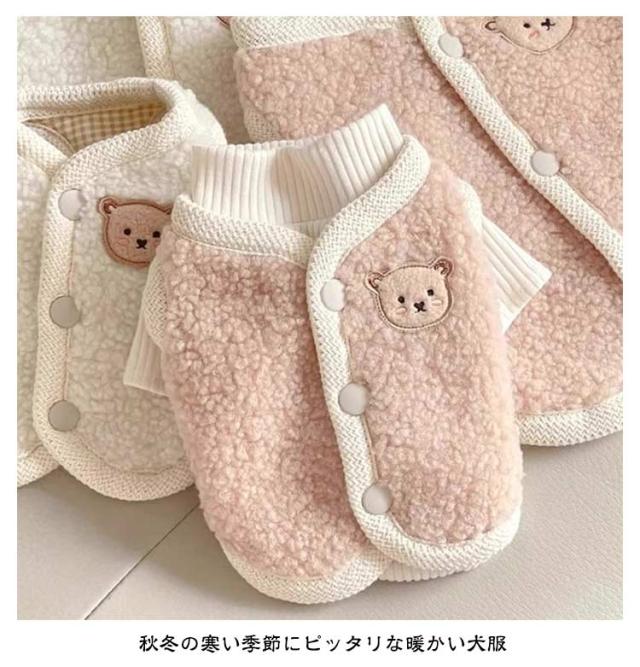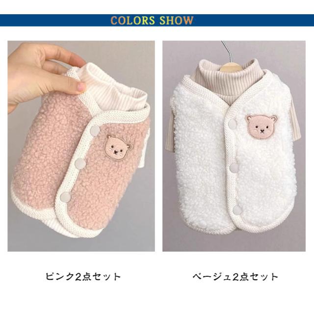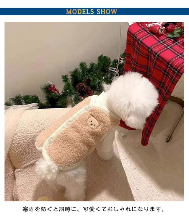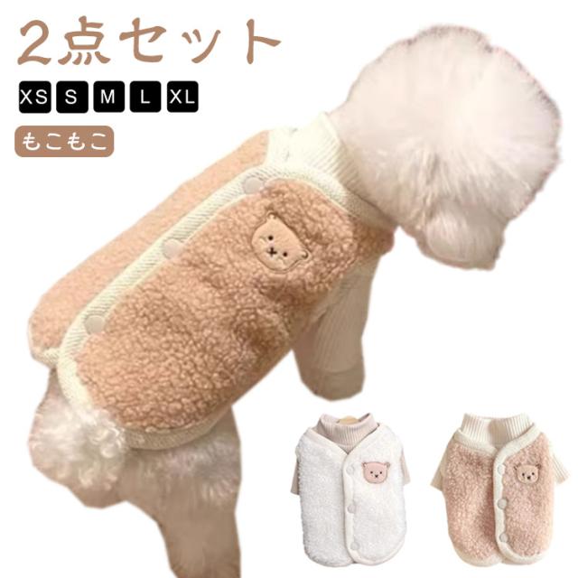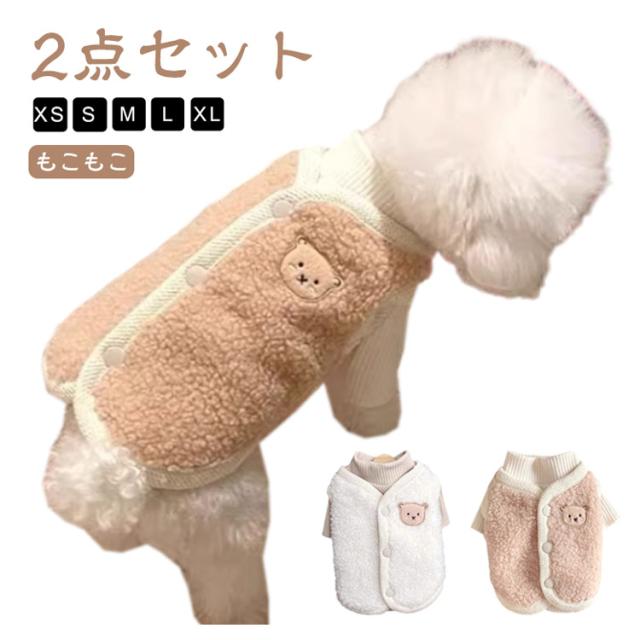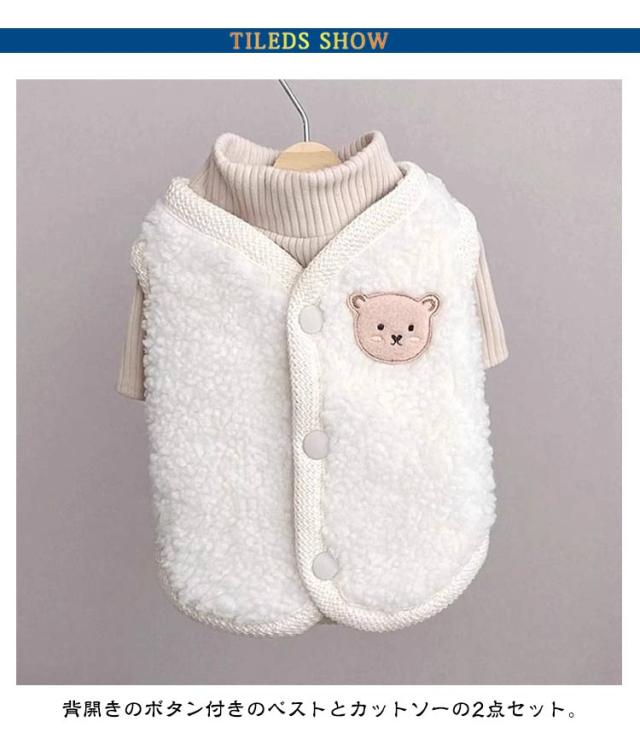 背中開き お洒落 インスタ映え 柔らかい クマ 可愛い ボアベスト 秋冬 重ね着 ドッグウェア カットソー 防寒着 暖かい 熊柄 抜け毛防止 男の子 女の子 【2点セット】犬服 ベスト 【2点セット】犬服 小型犬 服 もこもこ 冬服 暖かい