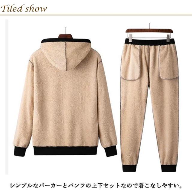 メンズ パーカー スウェット 上下セット 服 暖かい 長袖 セットアップ 部屋着 パーカー 厚手 プルオーバー 無地 シンプル スウェットパンツ セットアップ ルームウェア モコモコ 秋 冬 セットアップ 暖かい ジャージ スリム スポーツウェア ジム 運動