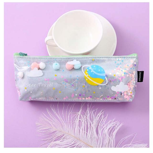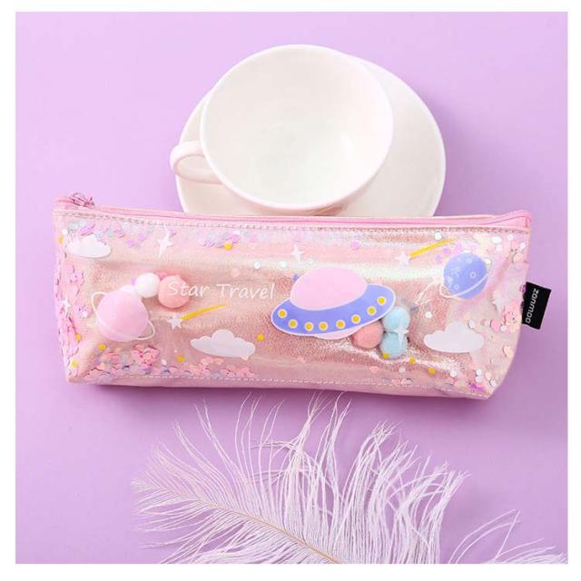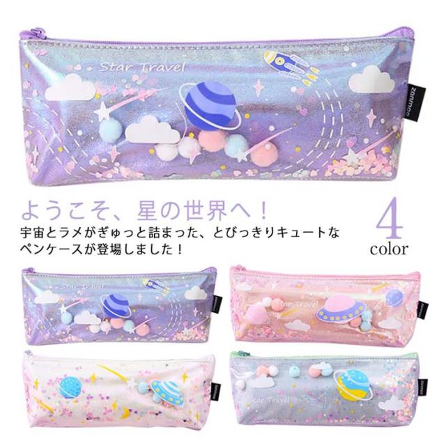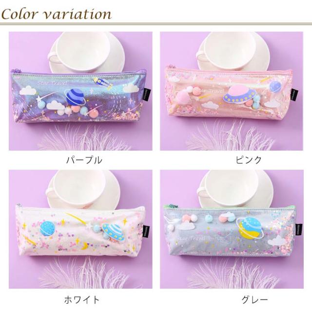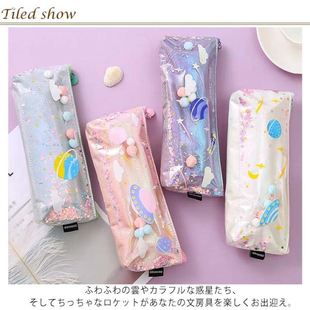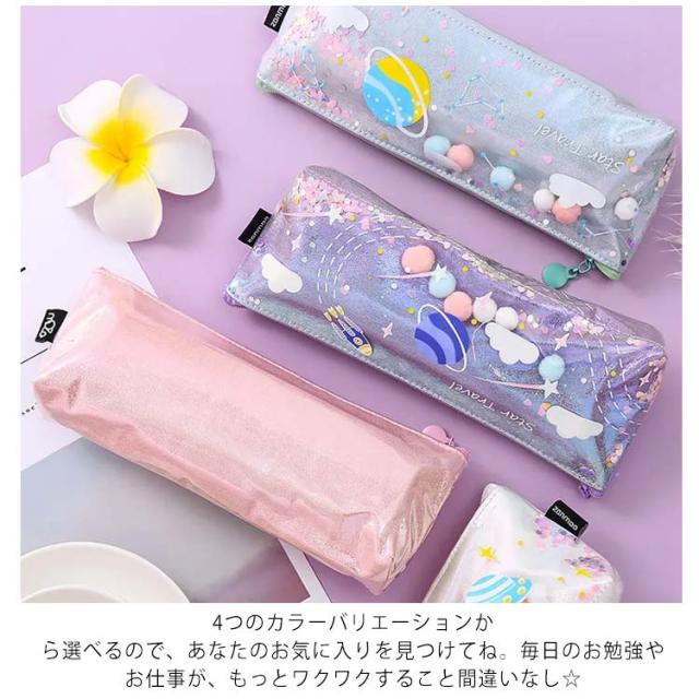 | ようこそ、星の世界へ!宇宙とラメがぎゅっと詰まった、とびっきりキュートなペンケースが登場しました! ふわふわの雲やカラフルな惑星たち、そしてちっちゃなロケットがあなたの文房具を楽しくお出迎え。 ポンポンボールもゆらゆらしていて、見ているだけでハッピーな気分になっちゃう♪ 大きさは22×8cmで、たっぷり入るのにとっても軽い! 4つのカラーバリエーションから選べるので、あなたのお気に入りを見つけてね。毎日のお勉強やお仕事が、もっとワクワクすること間違いなし☆ | |