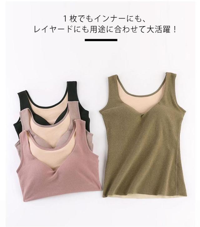 | デイリーに使える便利でな一体型カップ付きタンクトップです! 裏起毛付きだからこれからの時期に大活躍してくれるインナーです。 伸縮性があり身体に程よくフィットして背中のラインもスッキリ! 通勤冷え対策、お腹冷え予防、あったかアイテムです! 立体的な一体型カップ付は取り外しできます。 普段使いはもちろん、ヨガやダンスなどのスタイルにもぴったりです◎ 1枚でもインナーにも、レイヤードにも用途に合わせて大活躍! | |