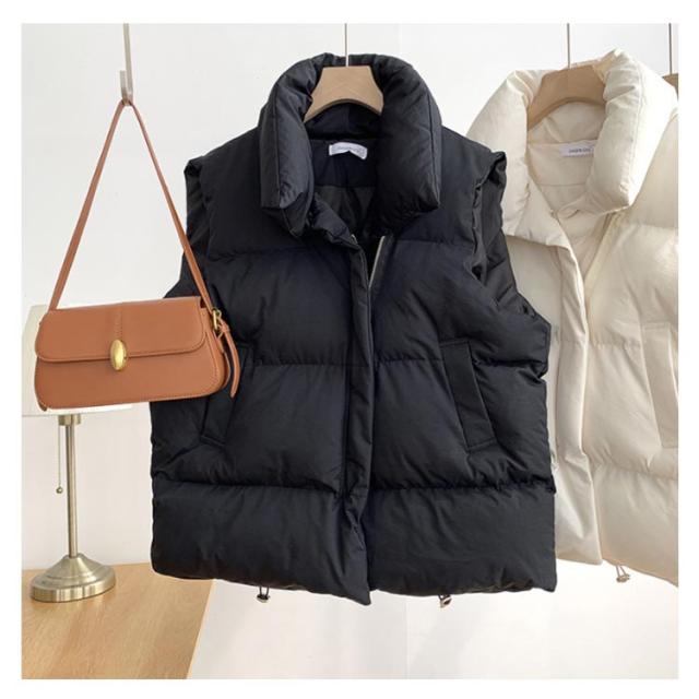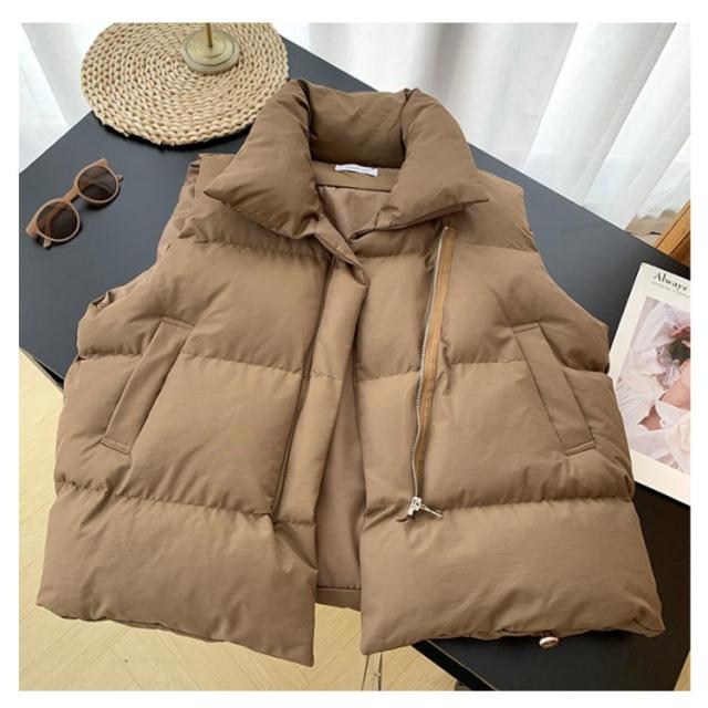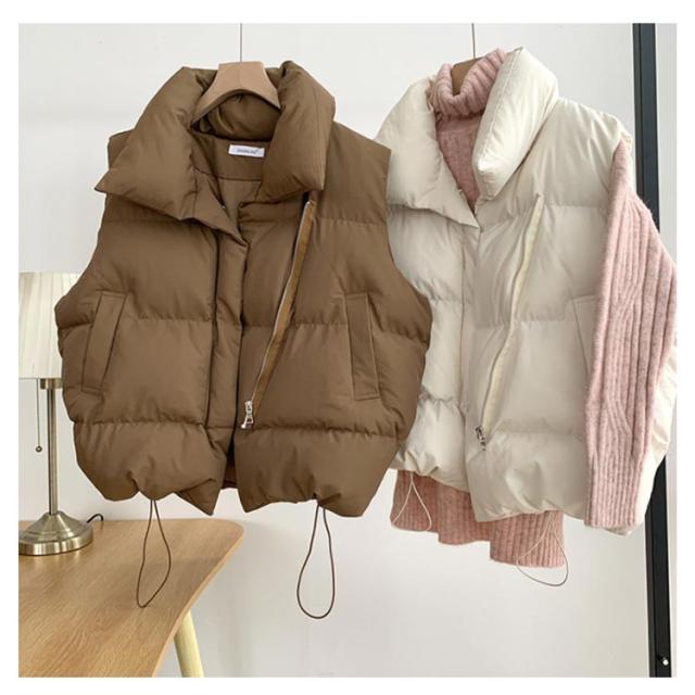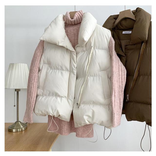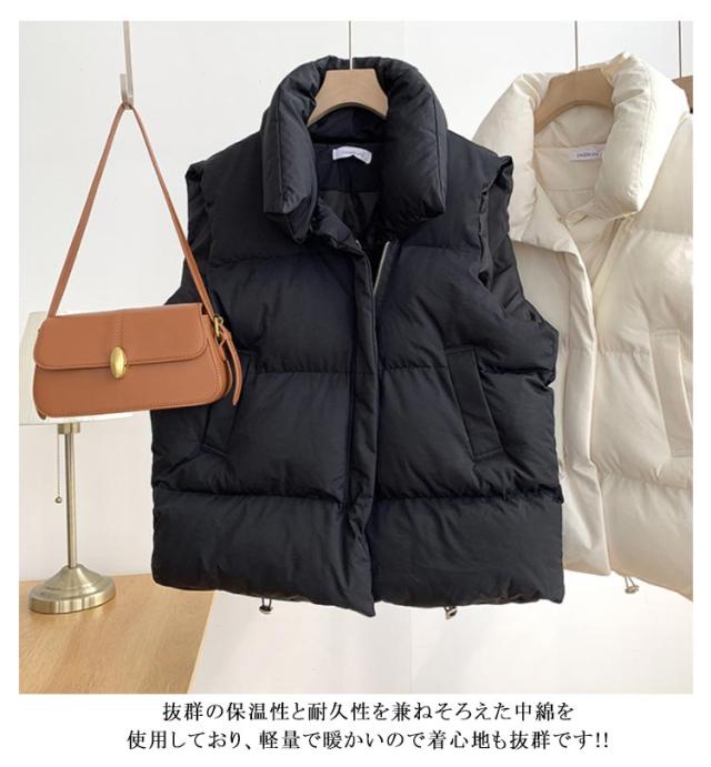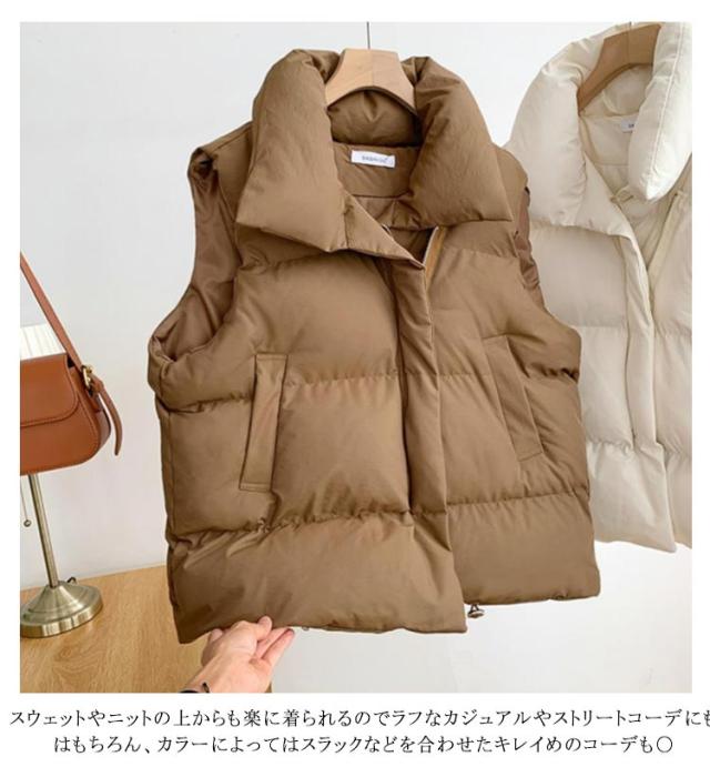 前開き ライトアウター アウター 重ね着 ジャケット 羽織り 軽量 秋冬 レディース 中綿ベスト 厚手 ゆったり 防寒 トップス 無地 シンプル ストリート 韓国 レイヤード 中綿ベスト 秋服 冬服 春 秋 冬