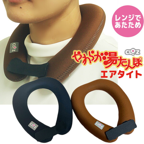 やわらか湯たんぽ エアタイト 肩用 レンジでチンする水入り密閉タイプ HAY-001-BK ブラック HAY-001-BR ブラウン CLO'Z 柔らか湯たんぽ ウェットスーツ素材 ゆたんぽ ユタンポ 首回り やわらかゆたんぽ ユタンポ エアータイト くび用 肩用 肩掛けタイプ