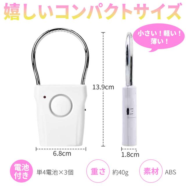 ●ドア・窓を開けると音が鳴る!●おうちへの不法侵入を防止する最強防犯グッズ!電源をONにした状態でドアノブに防犯アラームを掛けておくと、泥棒がドアや窓を開けようとするわずかな振動を感知し大音量で警告!外出時や睡眠中の防犯対策やお子様が勝手に出て行かないように守る用途でも使えます。