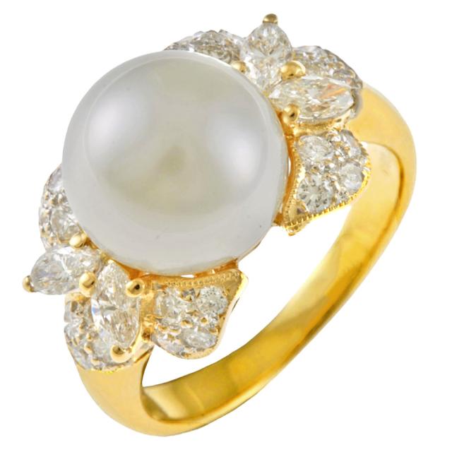 薄くわかりづらいロウ目(サイズ調整跡)がございます。 ◆素材:K18イエローゴールド ◆付属品:当店オリジナルラッピング、販売証明書(当店発行) ◆商品の状態:中古品(磨き直し済み) 艶やかな照りの真珠が施されたリングです。 マーキースカットと敷き詰められたダイヤモンドがきらきらと輝き、指元を華やかに演出します。 薄くわかりづらいロウ目(サイズ調整跡)がございます。