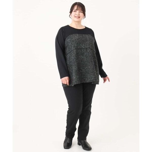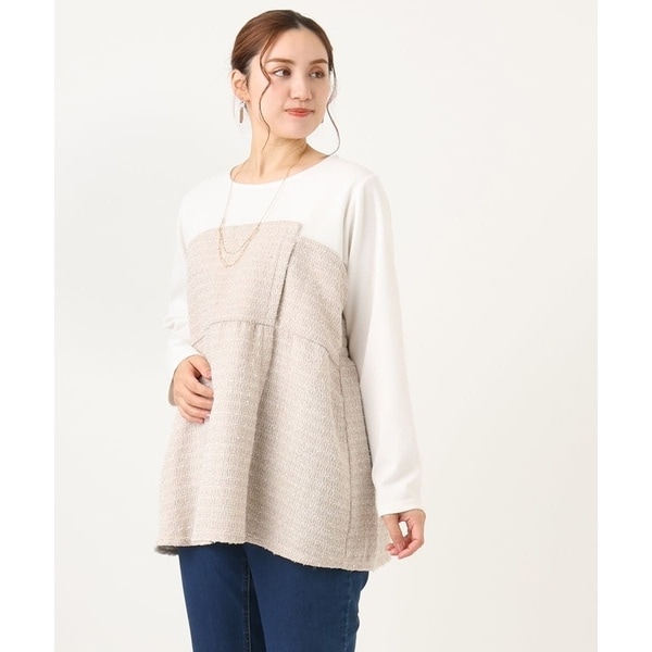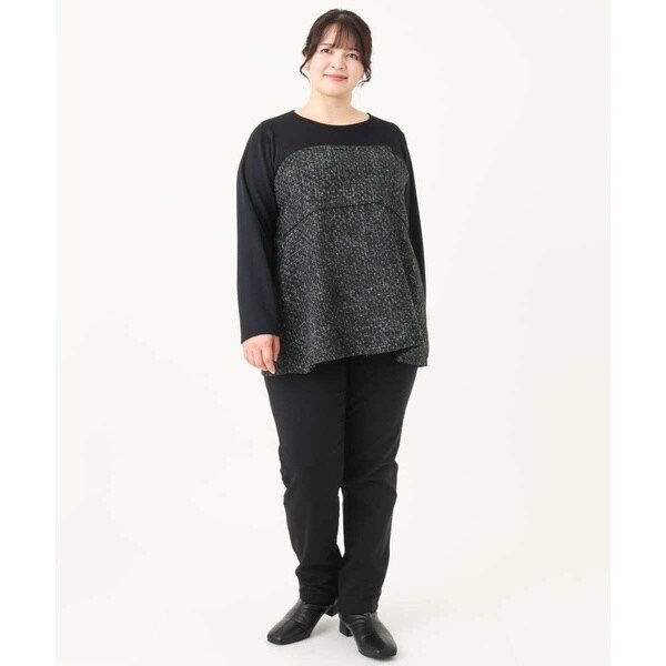程よく厚みのある起毛ジャージーをツィード生地で切替ています。