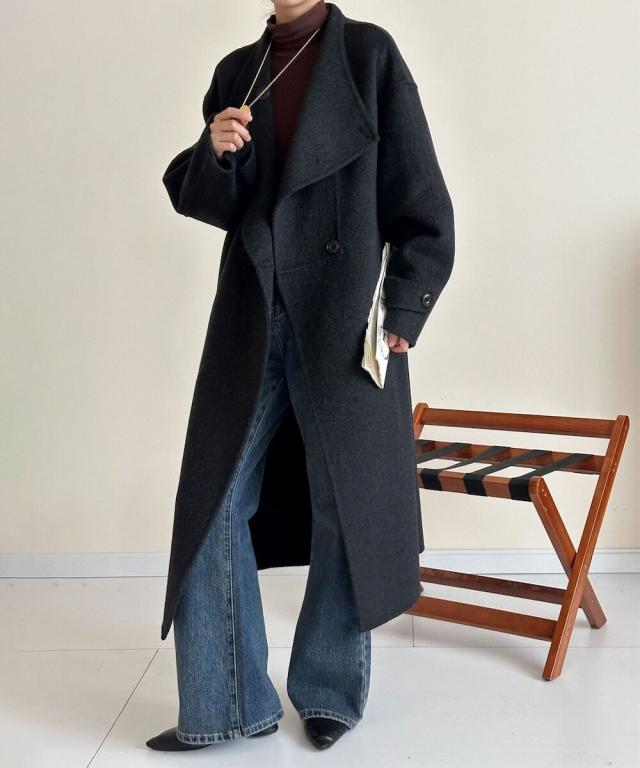 肩のラインが美しく、ゆったりとしたシルエットがリラックス感のあるカジュアルスタイルを演出。カジュアルはもちろんモードやフォーマルにも着回しやすい高見えするコートです。
