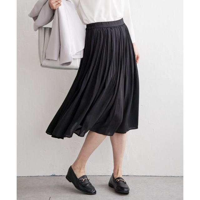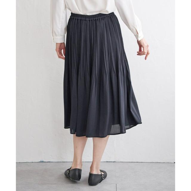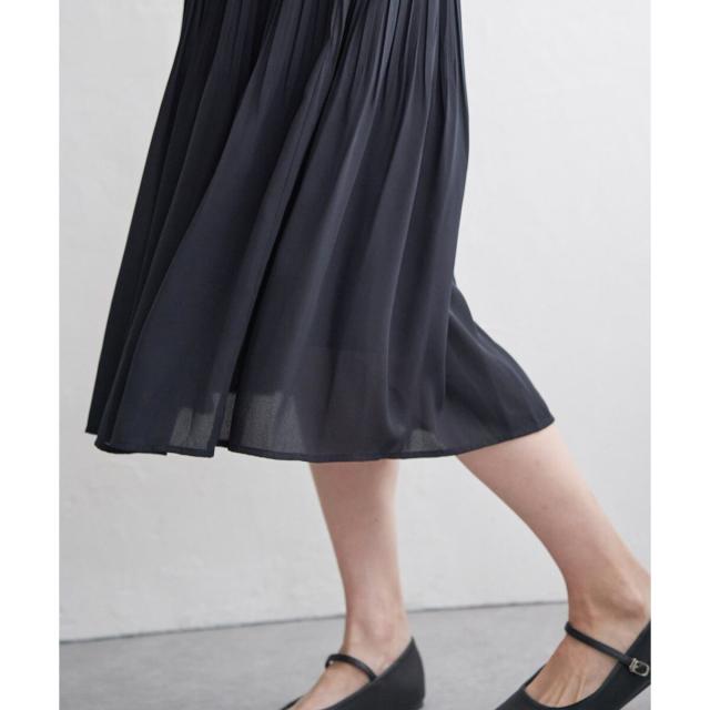 ・裾にかけてゆるやかになっていくプリーツで、ふんわり女性らしいシルエットを演出