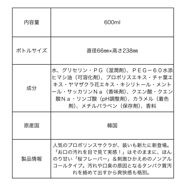 Propolinse プロポリンス サクラ 600ml 12本セット