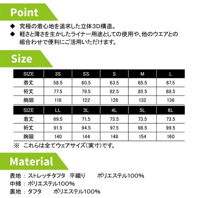 ◇軽さと薄さを生かしたライナー用途としての使用や他のウエアとの組合せで便利にご活用いただけます 。