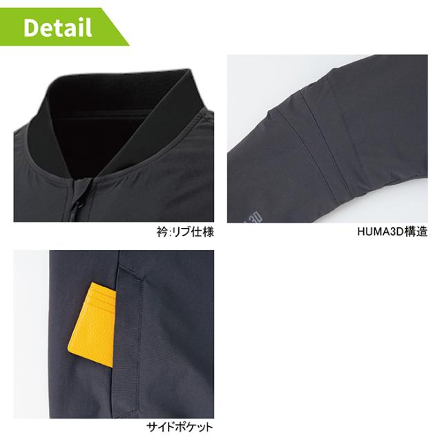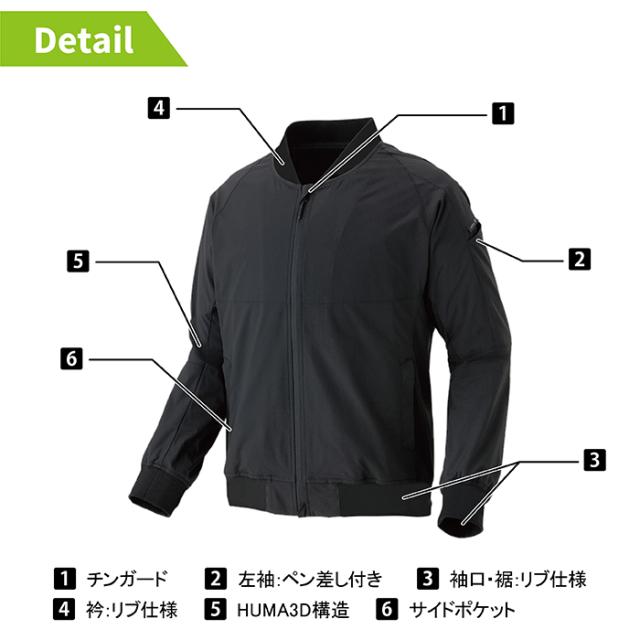 ◇機能:チンガード・袖ペン差し・衿リブ仕様・HUMA3D立体裁断・袖口リブ仕様・サイドポケット・裾リブ仕様