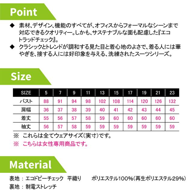 ◇機能:制電ストレッチ裏地・背抜き仕立て・ホームクリーニング・左胸ポケット・両脇ポケット・内ポケット