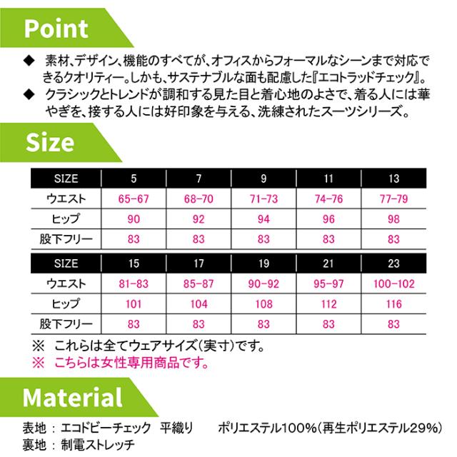 オフィスウェア ピエ 46023 レディーステーパードパンツ 23号 オールシーズン アイトス 事務服