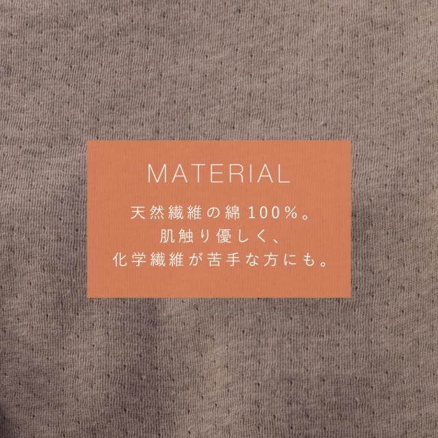 天然繊維の綿100%。肌触り優しく、化学繊維が苦手な方にもおすすめ。