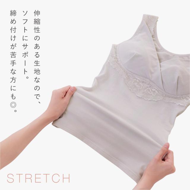 伸縮性のある生地なので、ソフトにサポート。毎日着るのにちょうど良いサポート力で、締め付けが苦手な方にもおすすめ。