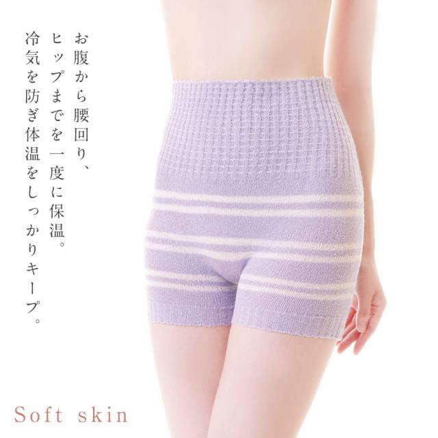 腹巻きとパンツが一体型になったふわふわ暖かパンツ。お腹から腰回り、ヒップまでを一度に保温。冷気を防ぎ、体温をしっかりとキープ。