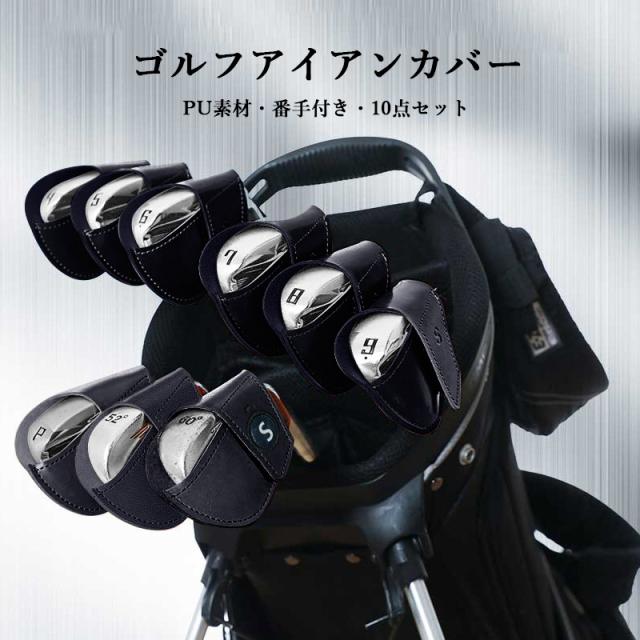 ゴルフアイアンカバー アイアンカバー ゴルフウッドカバー ヘッドカバー 防水 高級PU素材 ゴルフカバー ゴルフ用品 10点セット 番手付き 保護
