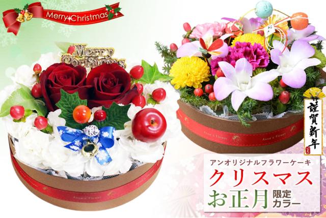 クリスマス お正月 2026 アン オリジナル フラワーケーキ ギフト プレゼント 花 誕生日 年末年始 アレンジメント ケーキ バラ お祝い 贈り物