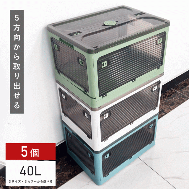 5面から出し入れできる折りたたみボックス 40L 5個の解説