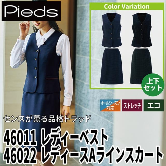 オフィスウェア ピエ 上下セット 46011 レディースベスト と 46022 Aラインスカート オールシーズン アイトス 事務服 女性用