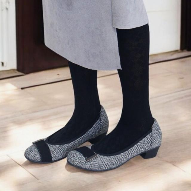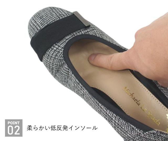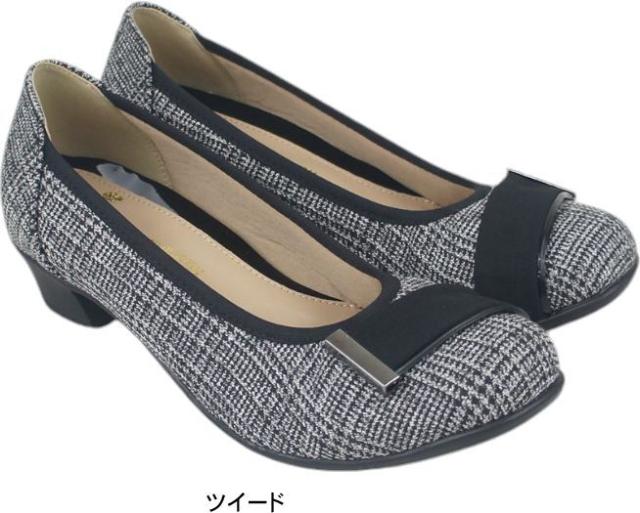 プレーン パンプス ラウンドトゥ レディース フォーマル ゆったり 幅広 3E ラクチン シンプル 冠婚葬祭 太 ローヒール 痛くない 歩きやすい 柔らかい バレエシューズ 低反発インソール 仕事 オフィス 黒 ブラック ツイード 靴 sm1232s