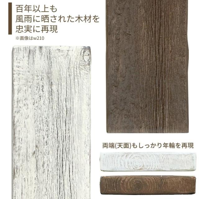 欧米で百年以上も風雨に晒された木材をシリコンゴムで型取り、細かな質感をFRP(繊維強化プラスチック)で再現。