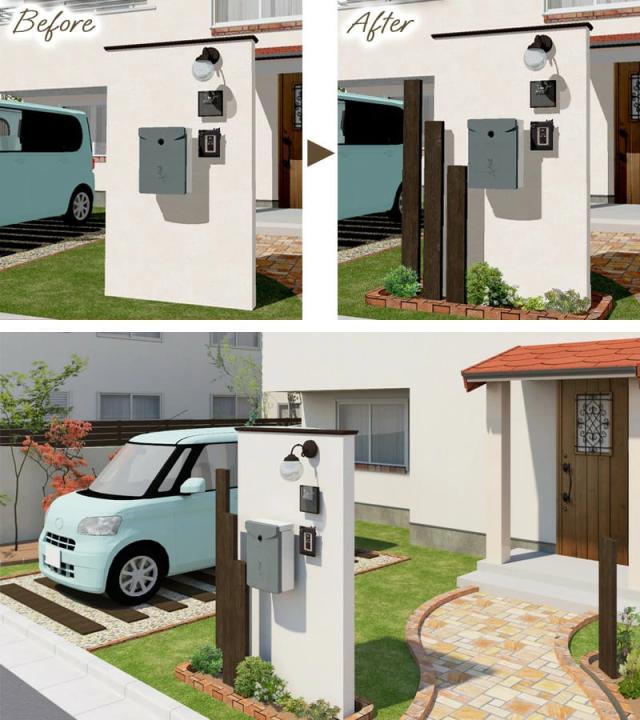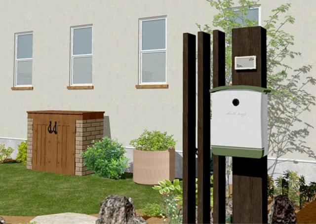 従来のアルモ(厚みのあるタイプ)との組み合わせでオリジナリティーあふれる機能門柱に。