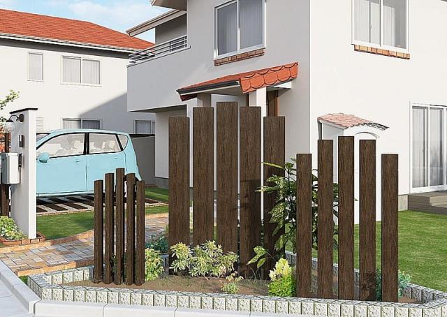 目隠しとして、スリットフェンスのように使うのもおしゃれ。w210とw130を組み合わせて変化のあるエクステリアに。