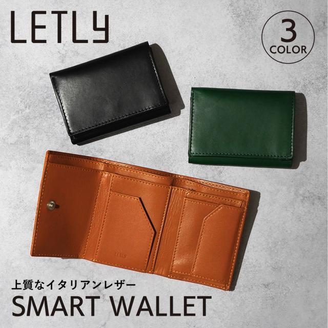 レトリー LETLY 財布 三つ折り メンズ 本革 小銭入れ付き コンパクト 薄型 イタリアンレザー ブラック ブラウン グリーン 黒