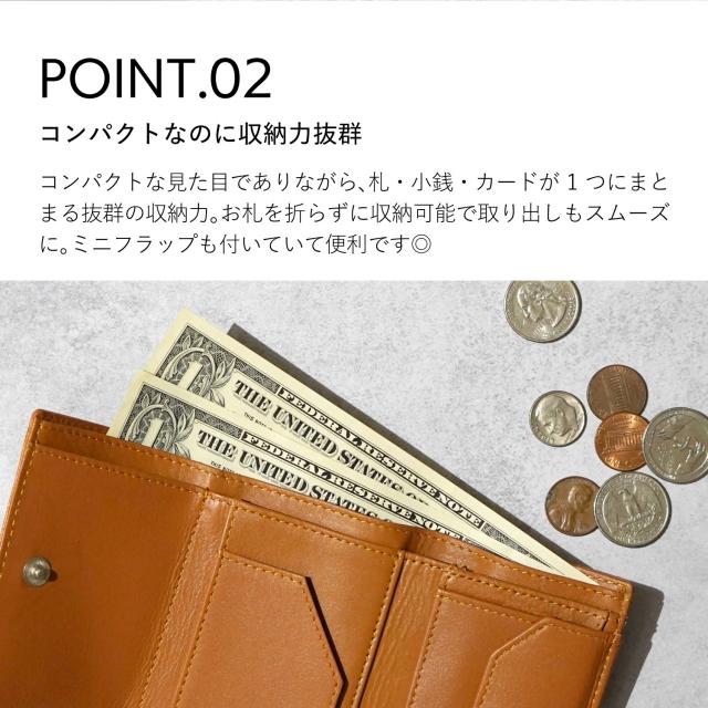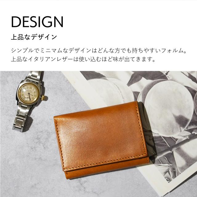 使い込むほどに味が出る、上質なイタリアンレザーを使用したレトリー(LETLY)の三つ折り財布。軽量で手のひらサイズのコンパクトな作りになっていて、お札や小銭、カードを1つにまとめることができます。お札を折らずに収納でき、取り出しもスムーズにできます。コインケースは大きく開くので中身が見やすく、取り出しやすくなっています。便利なミニフラップがあり、よく使用するカードやレシート、チケットなどに使えます。専用のボックスが付属しているので、自分用だけでなく、大切な方へのプレゼントにもピッタリなアイテムです。