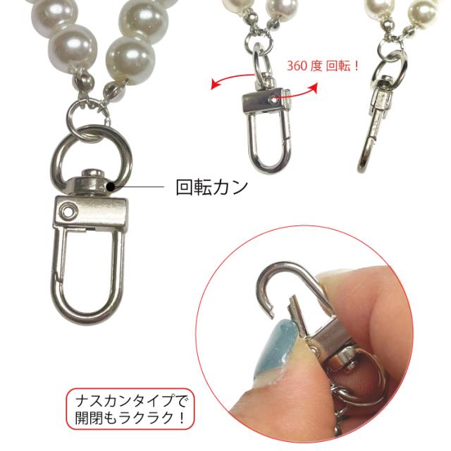 【メール便対応】ナスカン パールストラップ -02 バックチャーム パール チェーン 可愛い ハンドメイド パーツ チャーム レディース DIY 手作り プレゼント 上品 アレンジ ドールチャーム 人形 アクセサリー ストラップ キーチェーン キーホルダー ┃