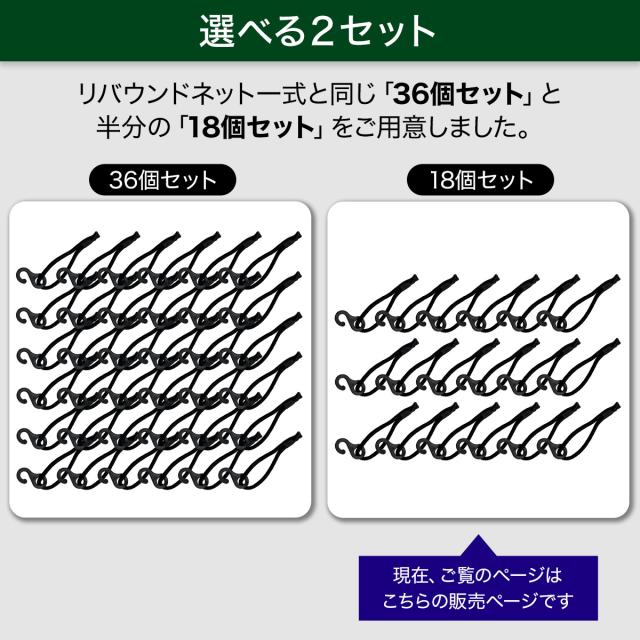 【選べるセット】リバウンドネット一式に付属している数と同量の「36個セット」と、半分の「18個セット」をご用意いたしました。必要数に応じてお選びください。