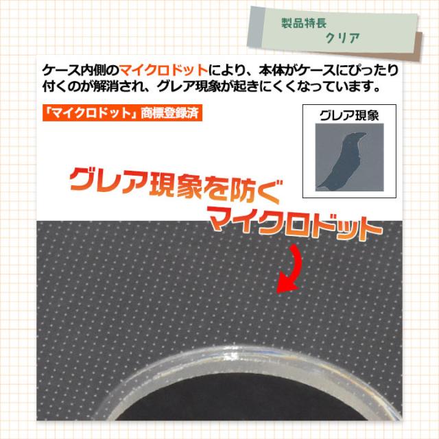 ケース内側のマイクロドット(※商標登録済)により、本体がケースにぴったりと付くのが解消され、グレア現象が起きにくくなっています。