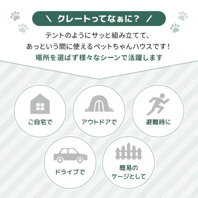 ・テントのようにサッと組み立てて、あっという間に使えるペットハウスです!場所を選ばず様々なシーンで活躍します。