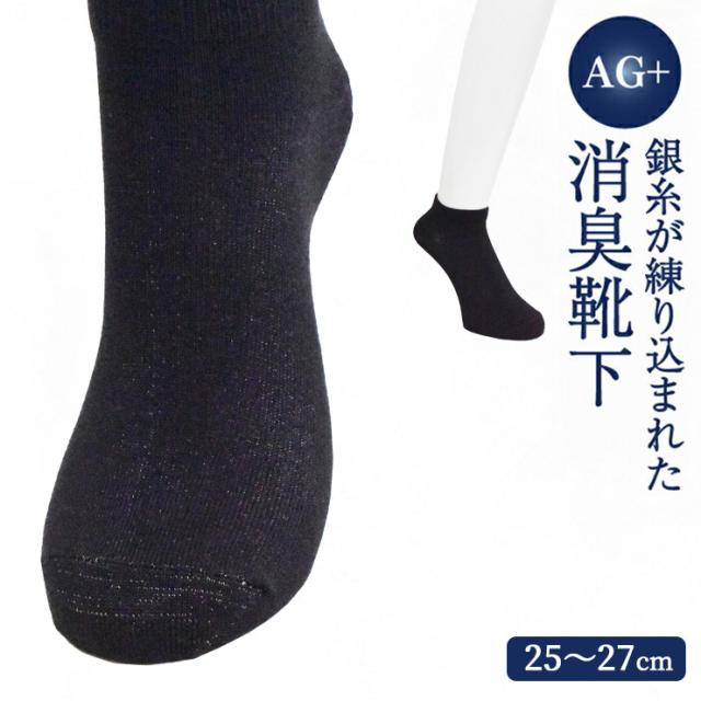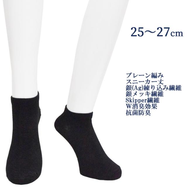 消臭靴下メンズ 銀イオン シルバーファイン スニーカー丈 7H002 単品 紳士靴下 臭わない 靴下 強力消臭 抗菌防臭 除菌 Ag ニオイ対策 銀メッキ スニーカーソックス くるぶしソックス 25cm 26cm 27cm(06515)