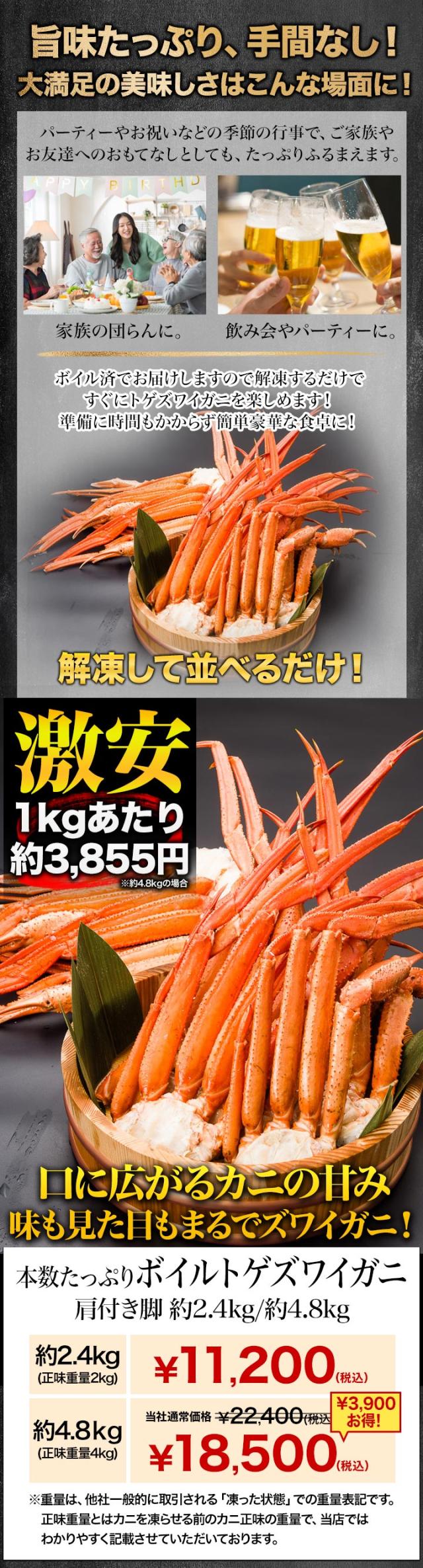 【期間限定タイムセール中】2.4kg 本数たっぷりボイルトゲズワイガニ肩付脚 トゲズワイ トゲズワイガニ ずわいがに トゲズワイガニ足 ボイルズワイ ズワイ 全国送料無料