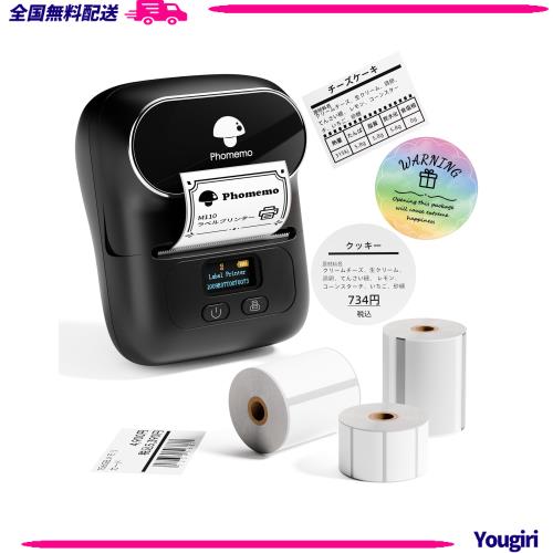 Phomemo M110 ラベルライター セット スマホ対応 ラベルプリンター 感熱ラベルライター本体+3巻ラベル付き 値札プリンター 業務用プリン