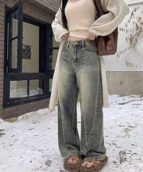 レディース ウォッシュ加工 ルーズデニム 色落ちジーンズ アメカジ 古着ファッション カジュアル ワイドパンツ 長ズボンボトムス体型カバー 低身長デニム着やせ レトロデニムお洒落