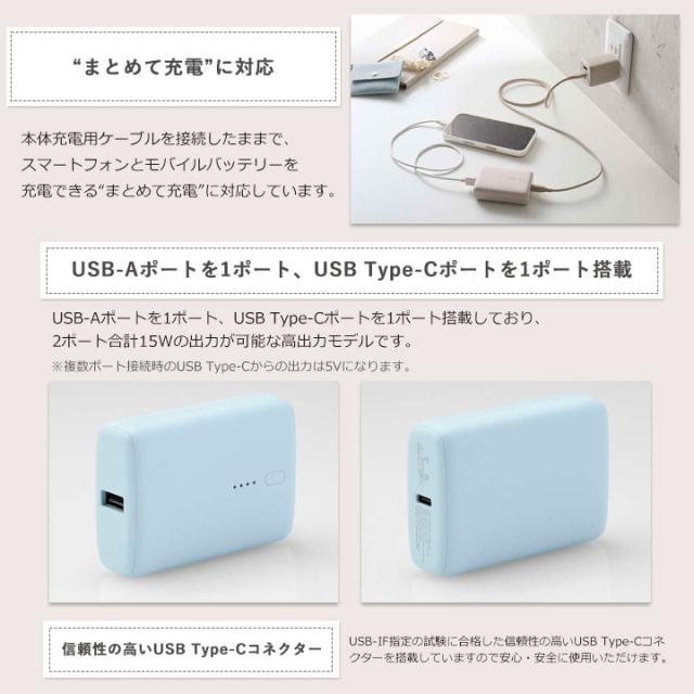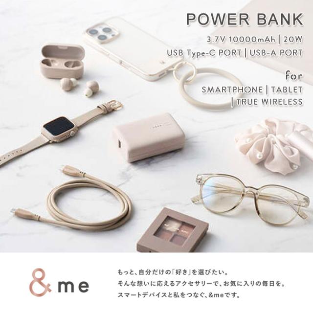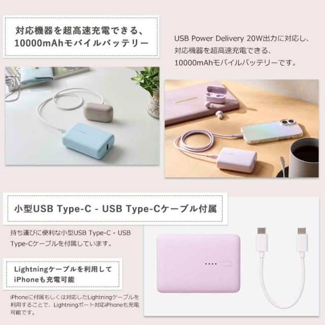 &meコンパクトモバイルバッテリー 10000mAh 20W USB Type-C USB Type-A PowerDelivery PD 高速充電 スマホ 充電 ペールブルー グレージュ ラベンダー メール便送料無料