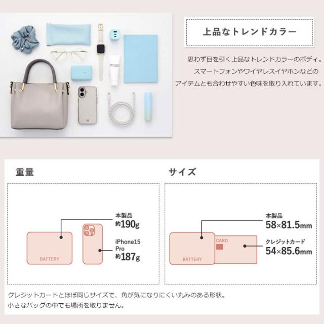 10000mAhの大容量をコンパクトに持ち運べるから、お出かけの際も安心。