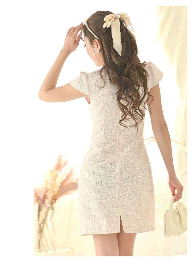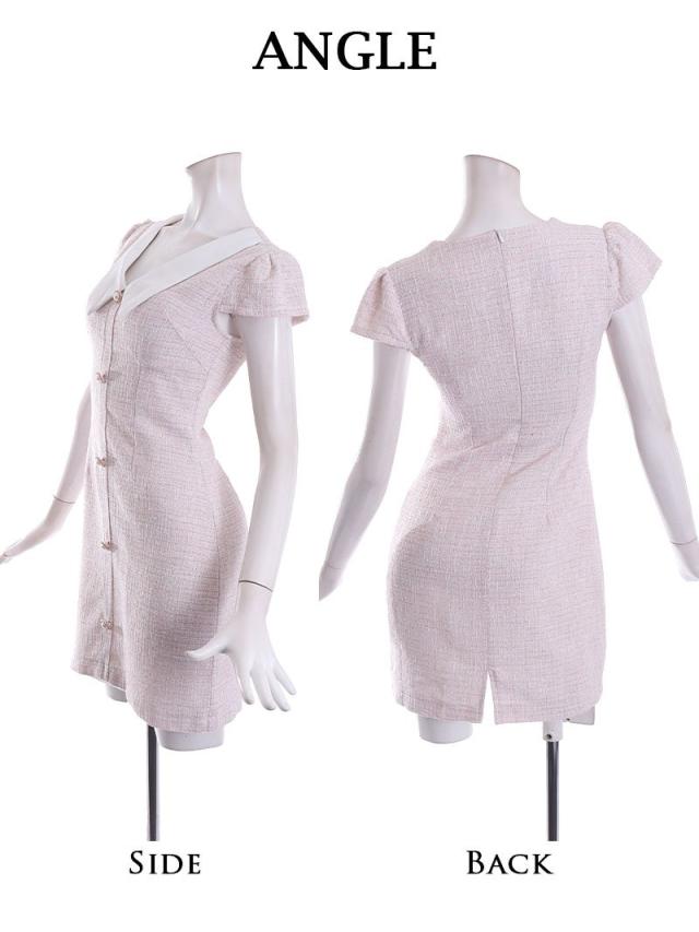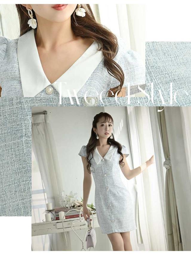 ☆【訳ありアウトレット】可愛い襟付き袖付きツイードキャバワンピース!キャバ嬢にぴったりなスタイリッシュなデザインです。