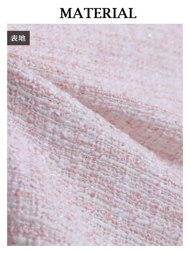 ☆上品で清楚な印象を与えるツイード素材が、特別なシーンを引き立てます。