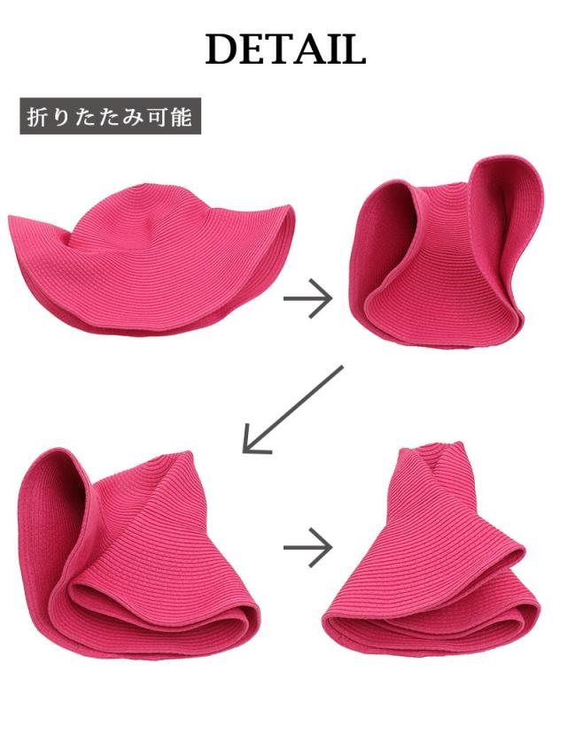 ☆【Ryuyu】の訳ありアウトレットから、たためるシンプルつば広めレディースストローハット。